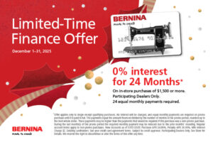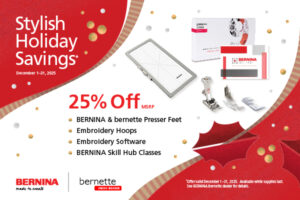 CHECK OUT THE BERNINA WISHBOOK FOR THE LATEST BERNINA MACHINES AND BUNDLES, HOLIDAY SALE PRICES ON ALL MACHINES!
