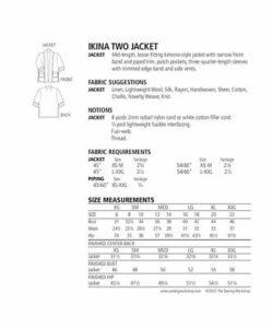 The Ikina Jacket by The Sewing Workshop is a mid-Length, loose-fitting kimono-style jacket with narrow front band, patch pockets, three-quarter-length sleeves (option to lengthen and taper.) Suggested fabrics: Linen, Lt. wt. Wool, Silk, Rayon, Handwoven, Sheer, Cotton, Challis, Novelty Weave, Knit. Here are some textured wovens from Fableism, Anna Maria Textiles, Brussels Washer Yarn Dyed, Essex Yarn Dyed and Nara Homespun. Please call to register for class.