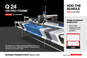 Have you been wanting to try out a longarm machine, but have not found the right opportunity? This is the class for you! We have the BERNINA Q24 set up on a professional frame ready for you to test drive. We have the BERNINA Q20 set up on the studio frame also ready for you to give it a try. We also have have the Q16 set up on the Horn Lift table for the sit down or stand up option. You will experience the smooth operation of the BERNINA Q Series machines on all three models or you may spend all your time playing on the machine that feels right for you. We have an optional bundle of special savings through out the month of March and 0% Financing for 60 Months from 3/10-3/14 only with the BERNINA CREDIT CARD (apply here) . PREREGISTRATION REQUIRED ~ CLASS SIZE LIMITED ~ PLEASE CALL OR SIGN UP ONLINE TO REGISTER (603-436-6343.)