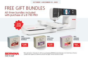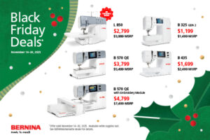 Come try the BERNINA 990, BERNINA 790 PRO, BERNINA 770 PRO, KAFFE 770 Plus LIMITED EDITION, BERNINA 570, 4 SERIES and 3 SERIES machines.