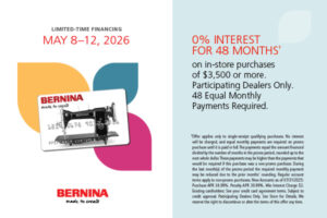 How do you know until you try it? Test out the features that set the BERNINA sewing machine above other brands. By the end of the session, you will have experienced how ‘Nothing sews like a BERNINA’ and learned about many different features of the various models. Informed staff will be able to answer any questions you have regarding the machines, which will allow you to make a confident decision on the model that will best fit your sewing needs! PREREGISTRATION REQUIRED ~ CLASS SIZE LIMITED ~ PLEASE CALL OR SIGN UP HERE TO REGISTER (603-436-6343.)