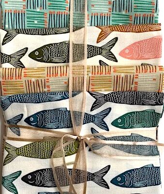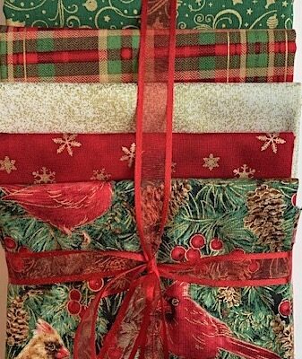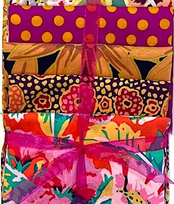 A selection of 8 fat quarters arranged with similar or complimentary fabrics according to various themes.